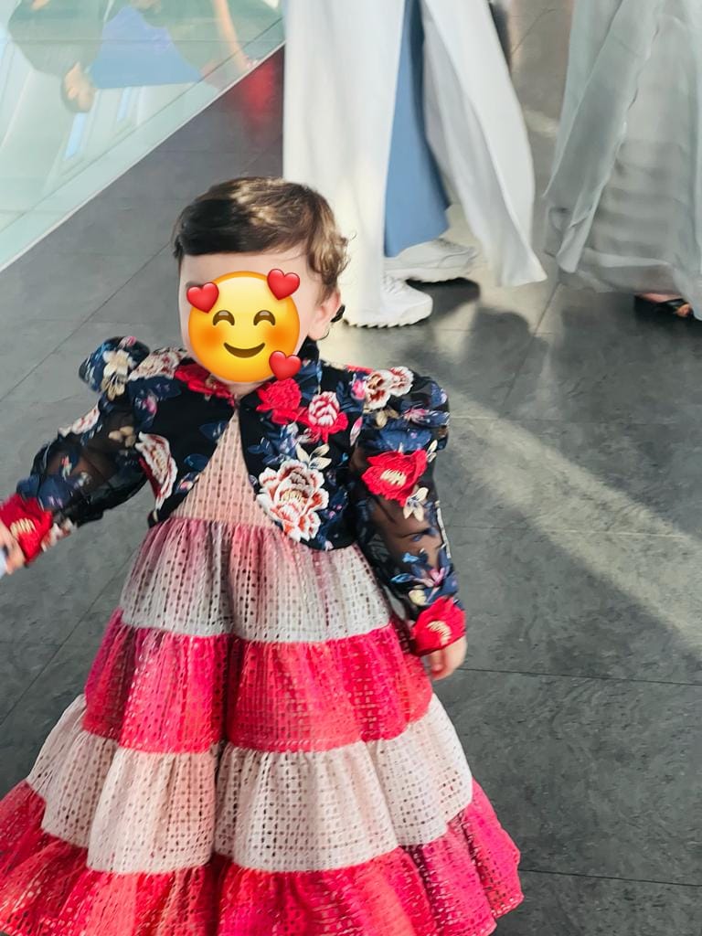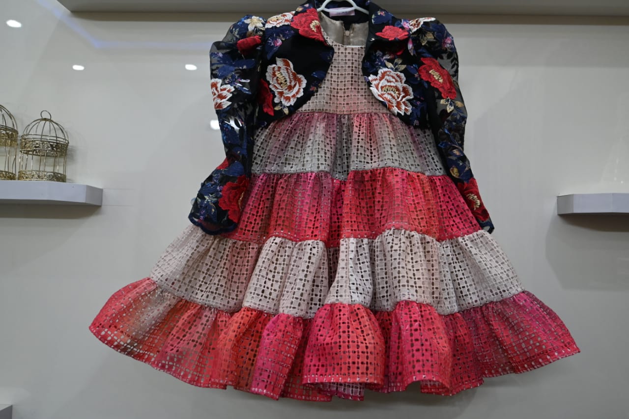 2pc Double Skirt Frock with Big Bow on Back. & 3D Flowers & Pearls Emblishments on it