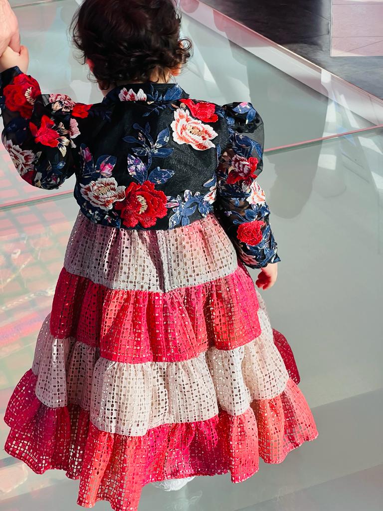 2Piece Frill Frock With Fancy Indian Rawsilk Jacket..!!